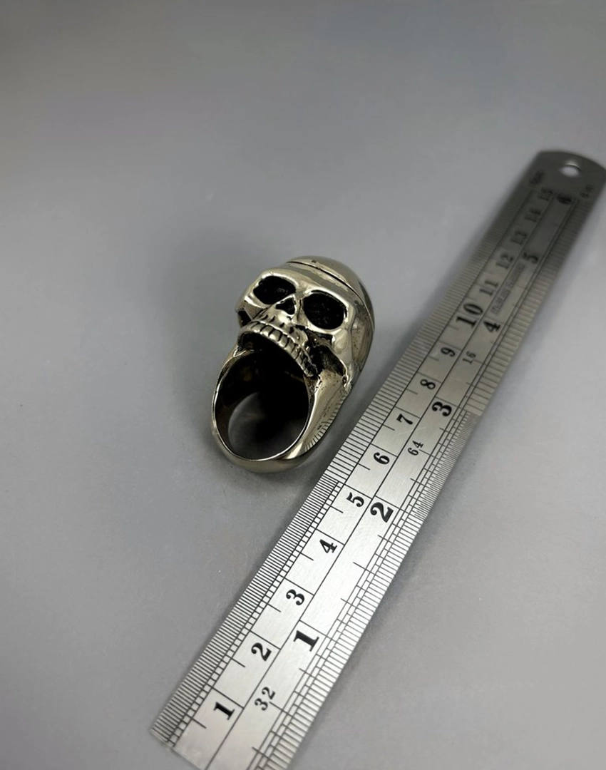 Product Details: White Bronze Skull Ring and Brass Brain Pendant Necklace