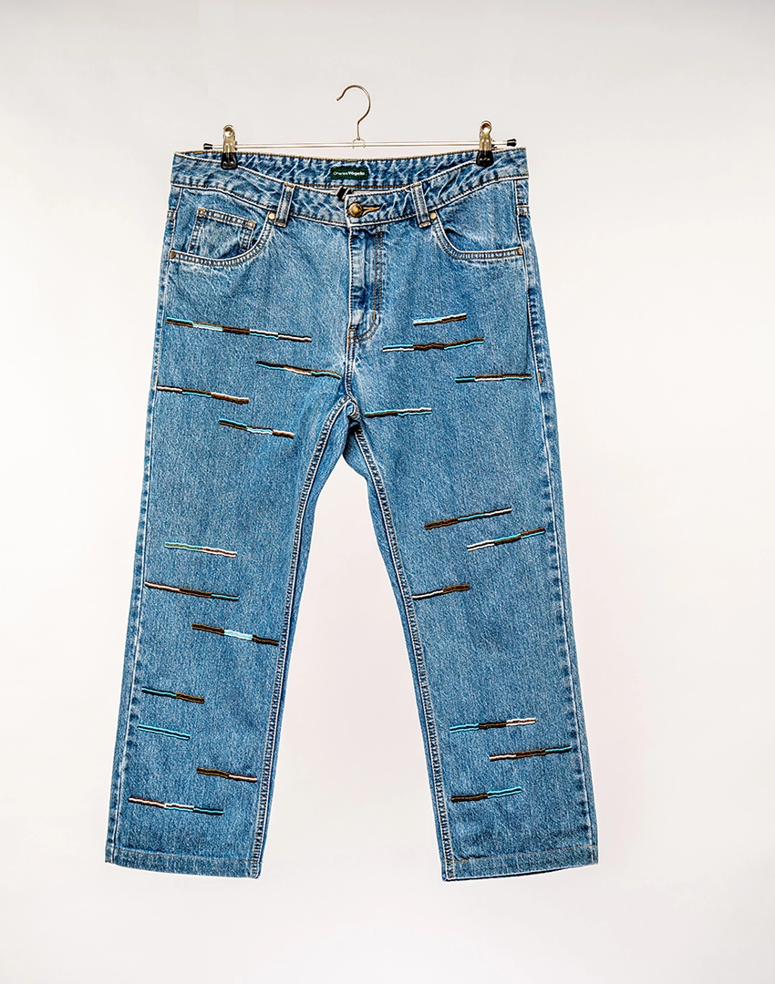 Mid-wash Denim, meticulously hand-beaded with traditional craftsmanship by the Maasai and Turkana tribe.