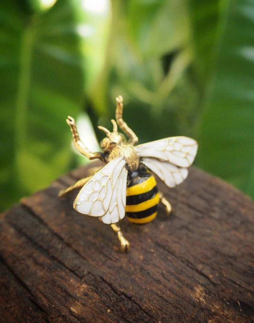 The Flying Bee Ring is a delicate statement piece, crafted from jewelry-grade brass with hand-applied white enamel wings that capture the grace and detail of a bee in flight.