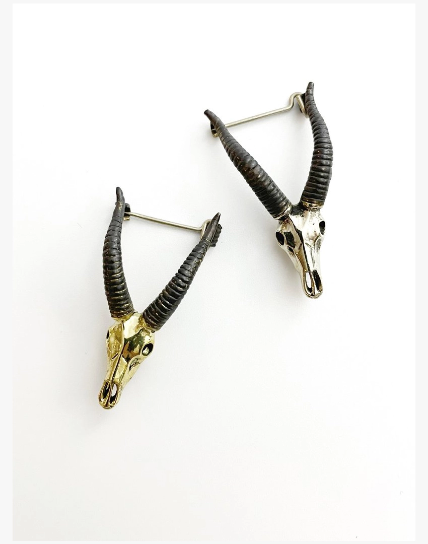 Goat Skull Brooch in White Bronze, available in two colour ways. A sculptural statement piece that naturally develops a unique patina over time for refined character and depth.