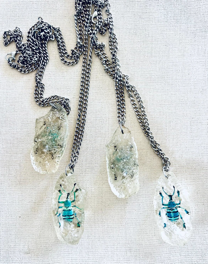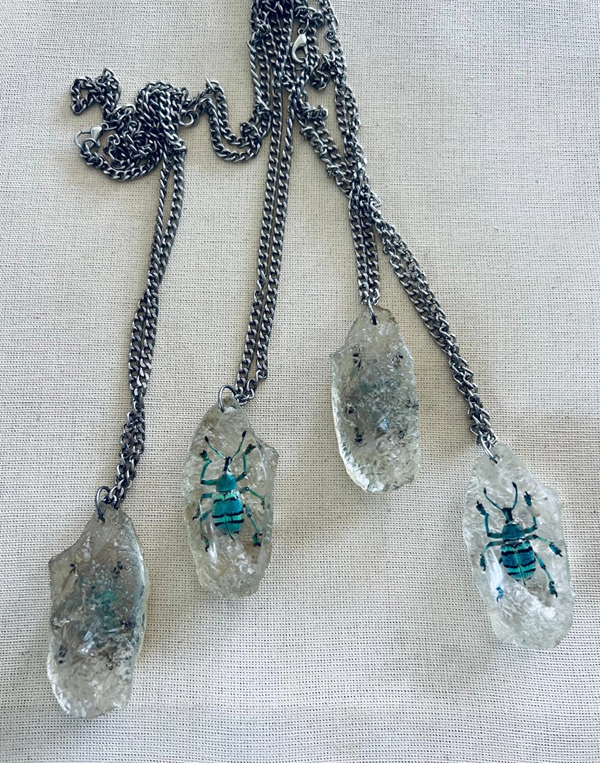 A unique nature-inspired jewelry piece where beetles are ethically collected after their natural life cycle and transformed into wearable art.