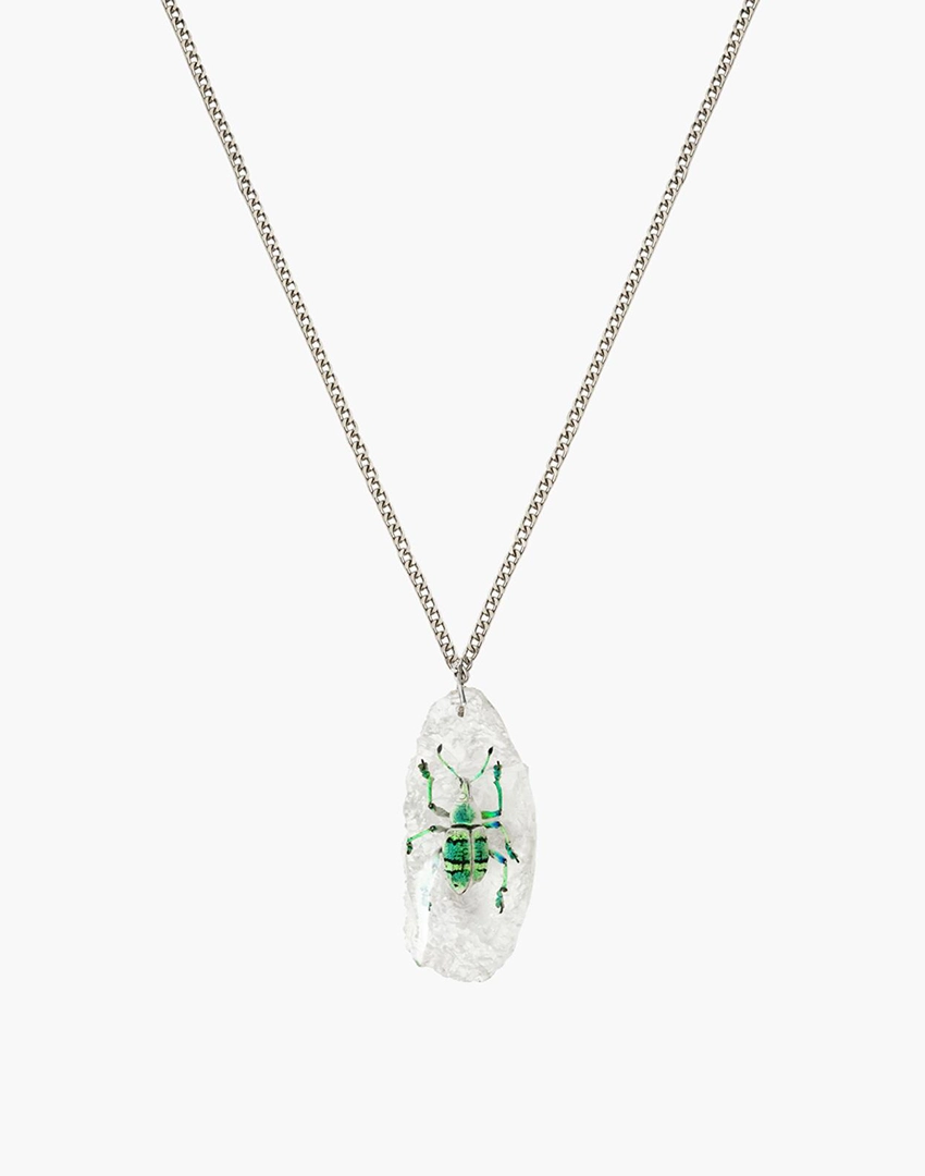 The Scarab Beetle Chain is a defining piece of the house, composed of multiple scarab beetles preserved in clear resin, each revealing its natural form and symbolism.