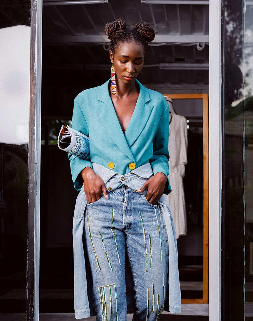 Sustainable denim crafted with African heritage and modern luxury.