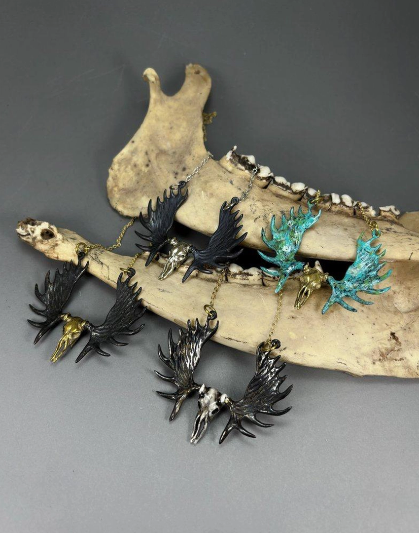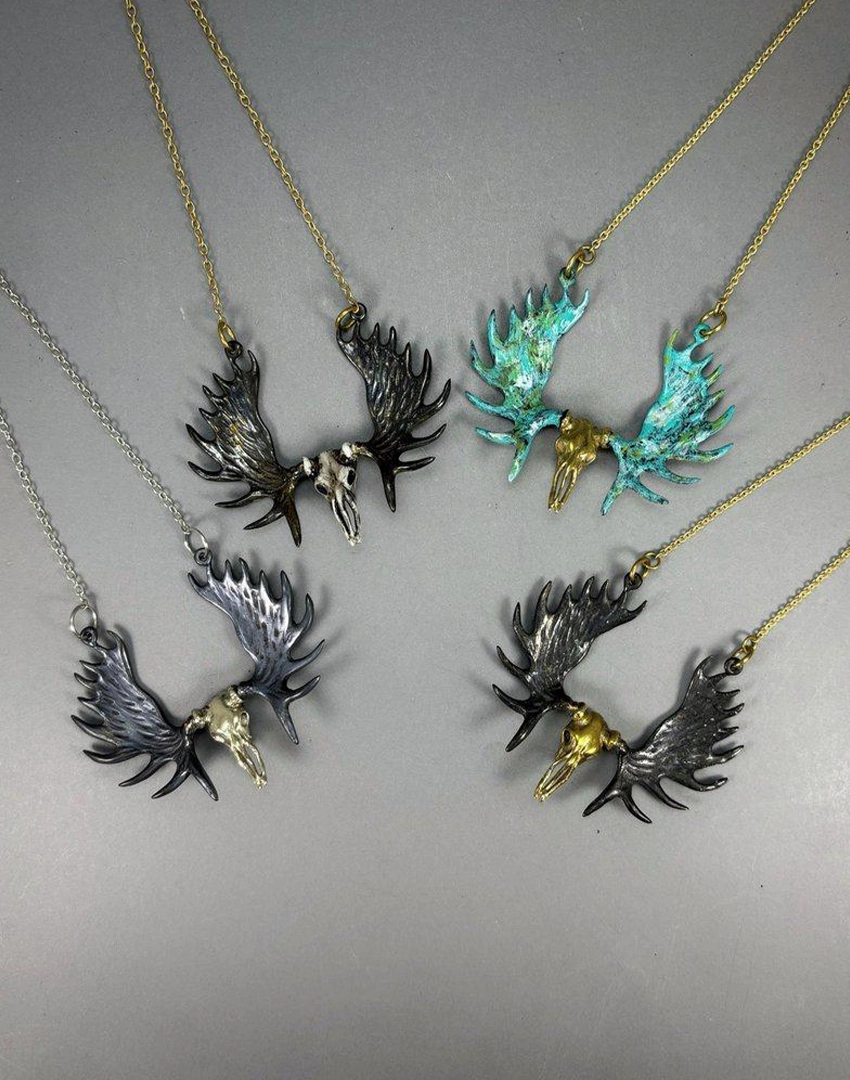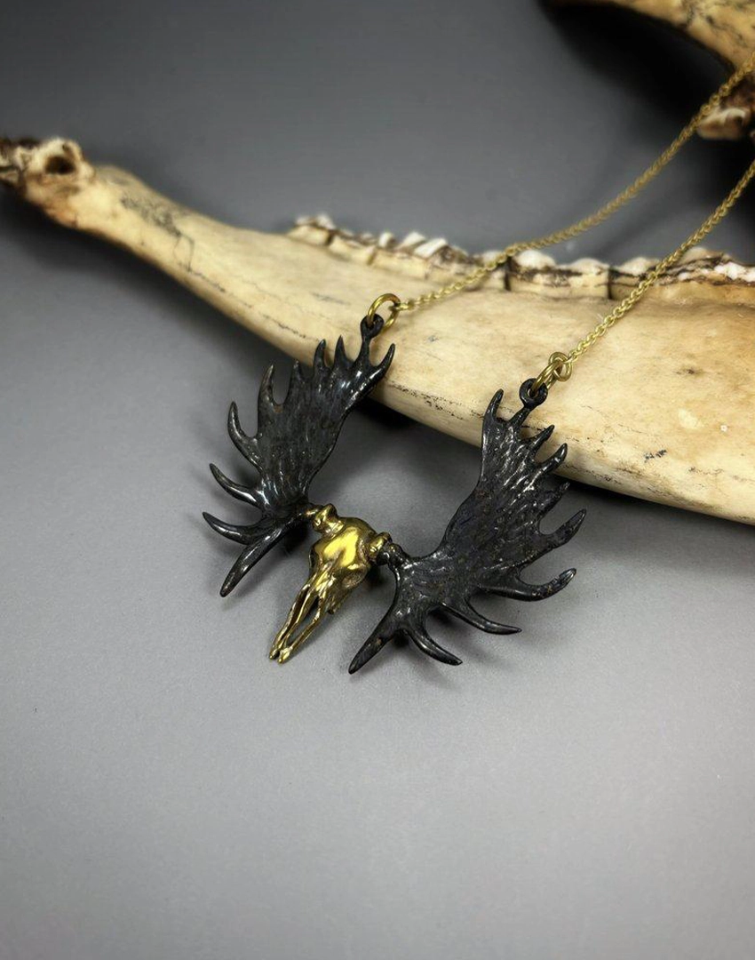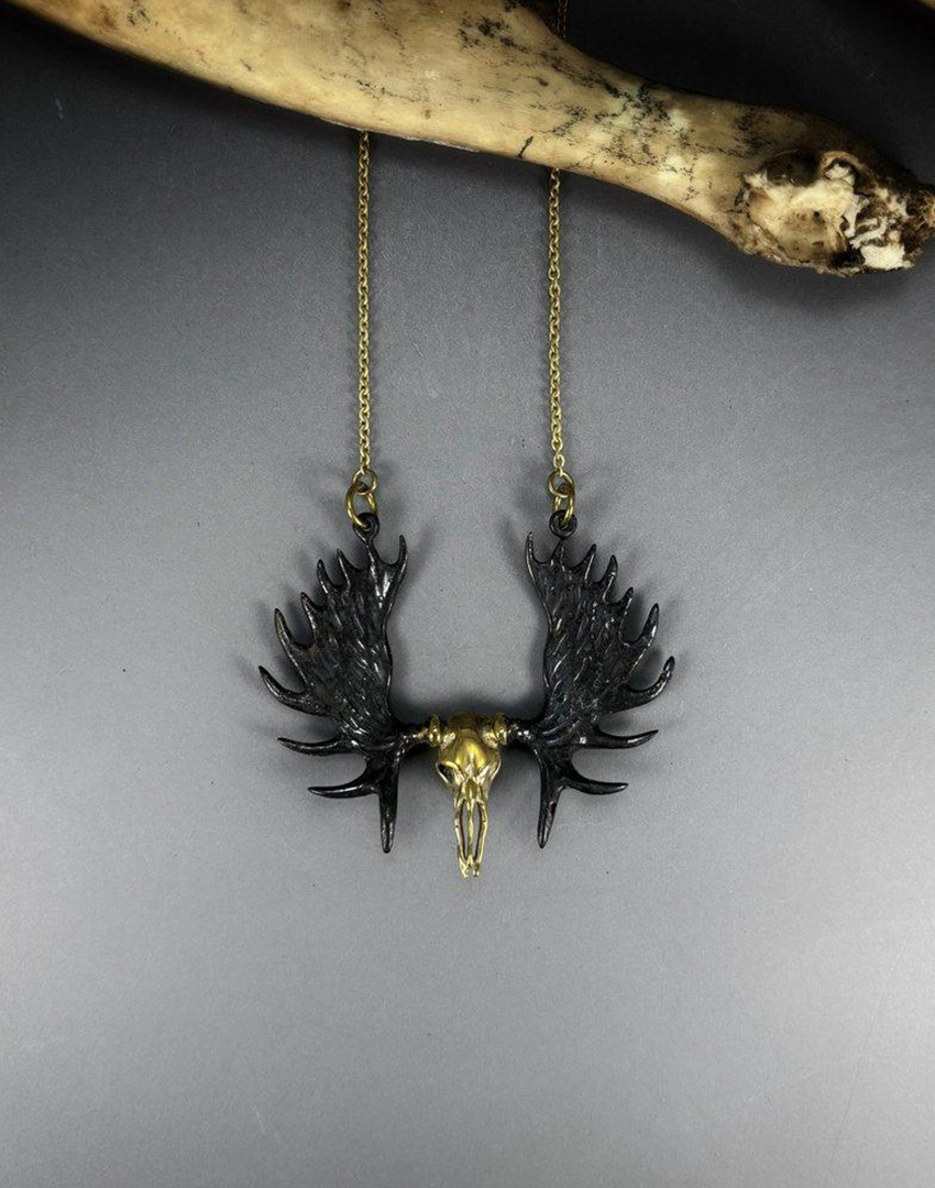 Product Details: Golden Moose Skull Pendant Necklace In Brass