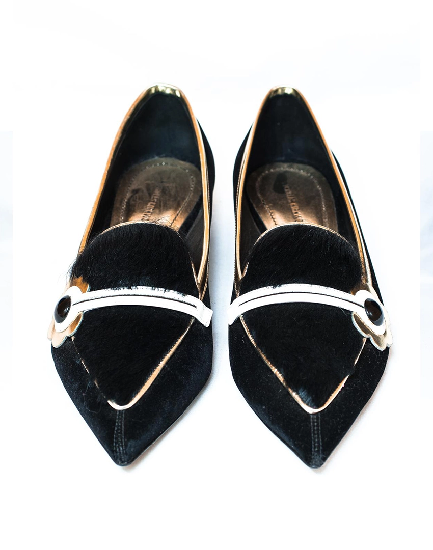 Nicholas Kirkwood, Suede & Fur with Gold Frame