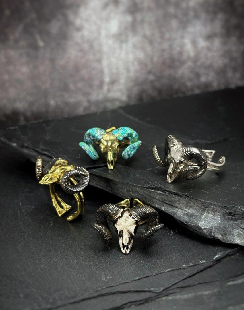 Product Details: Zodiac Aries Ram – White Bronze Skull Ring