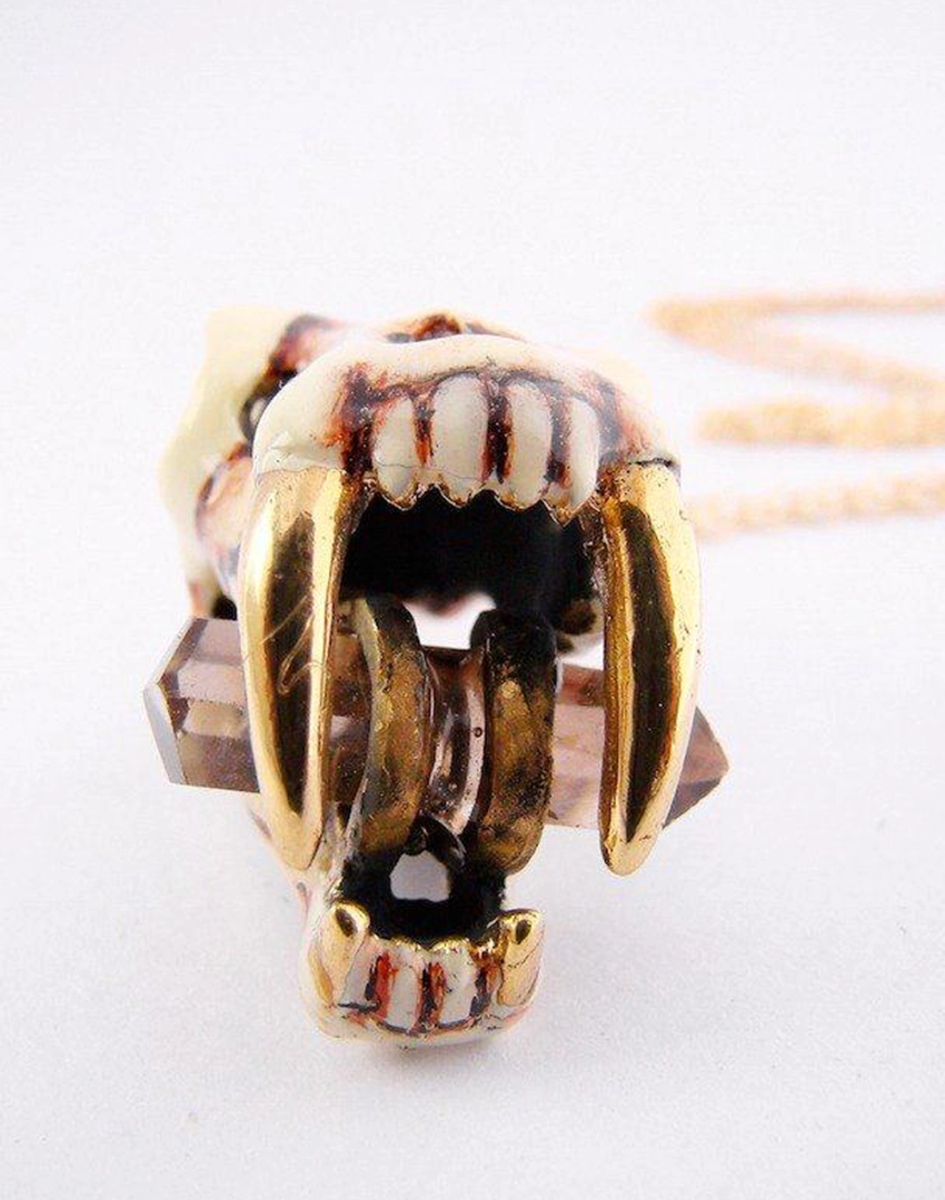 Product Details: Realistic Saber Tooth Skull Pendant Necklace