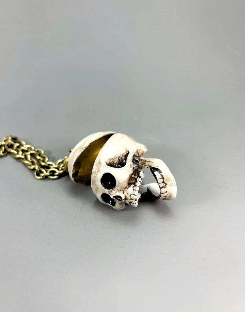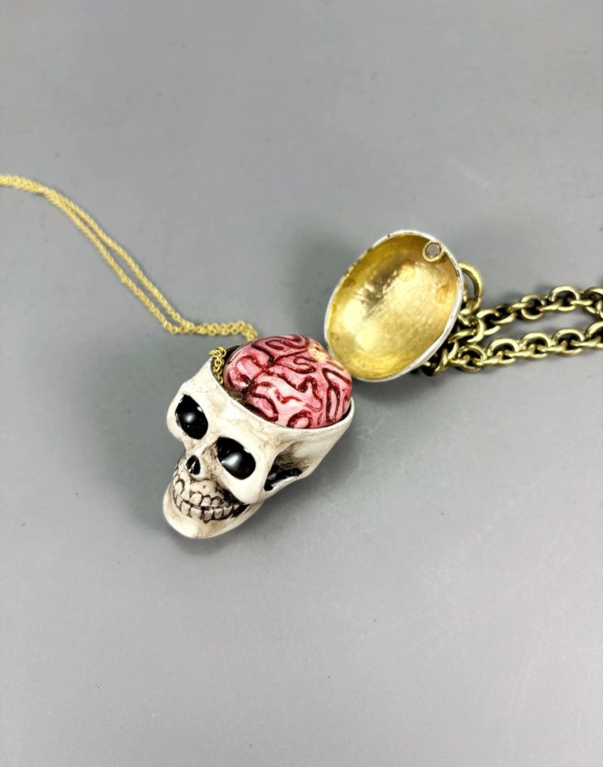 Product Details: Realistic Enamel Skull And Red Brain On Pendant Necklace