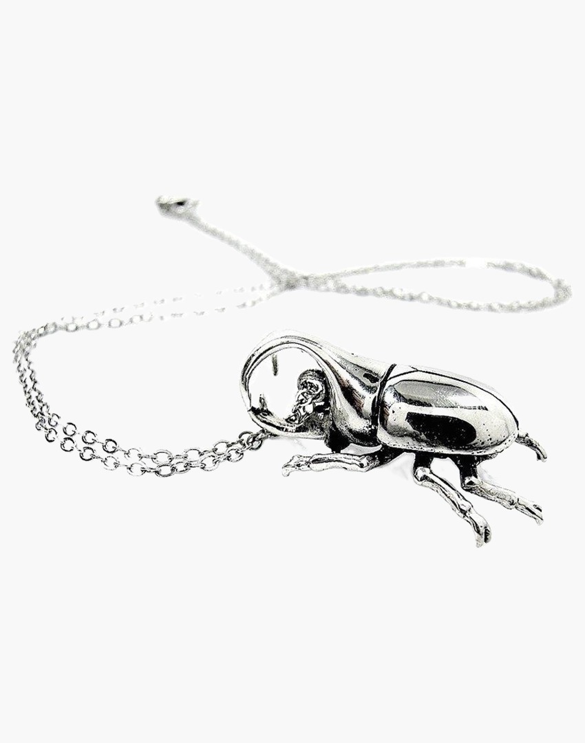 Product Details: Rhinoceros Beetle Pendant – White Bronze