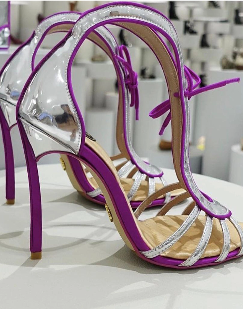 This Rum&Rose heel is cast in a striking silver finish catching movement, reflecting presence while delicate pink framings trace the sides with a subtle, romantic contrast.