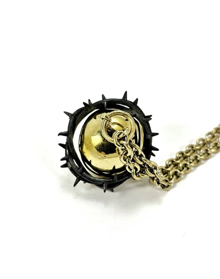 Product Details: Blackened Crown of Thorns Golden Brass Skull Necklace