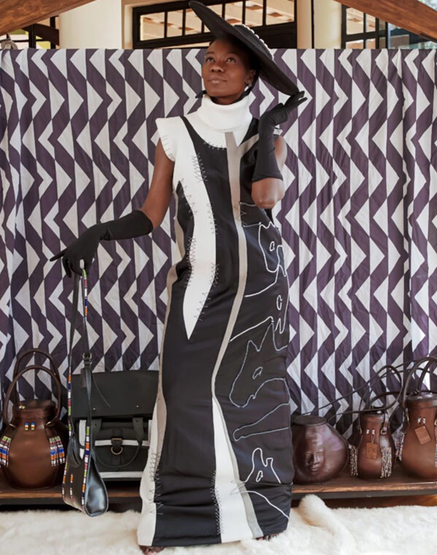 Discover “Symphony of Elegance,” where the designer’s imagination harmonises black and white quilting with futuristic fabrics.